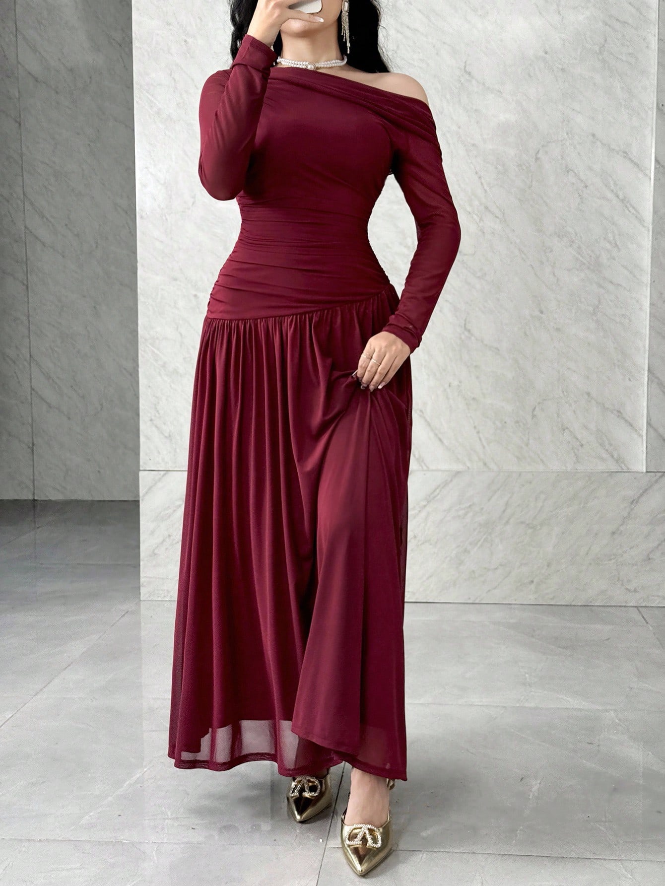 فستان طويل الأكمام شفاف أنيق