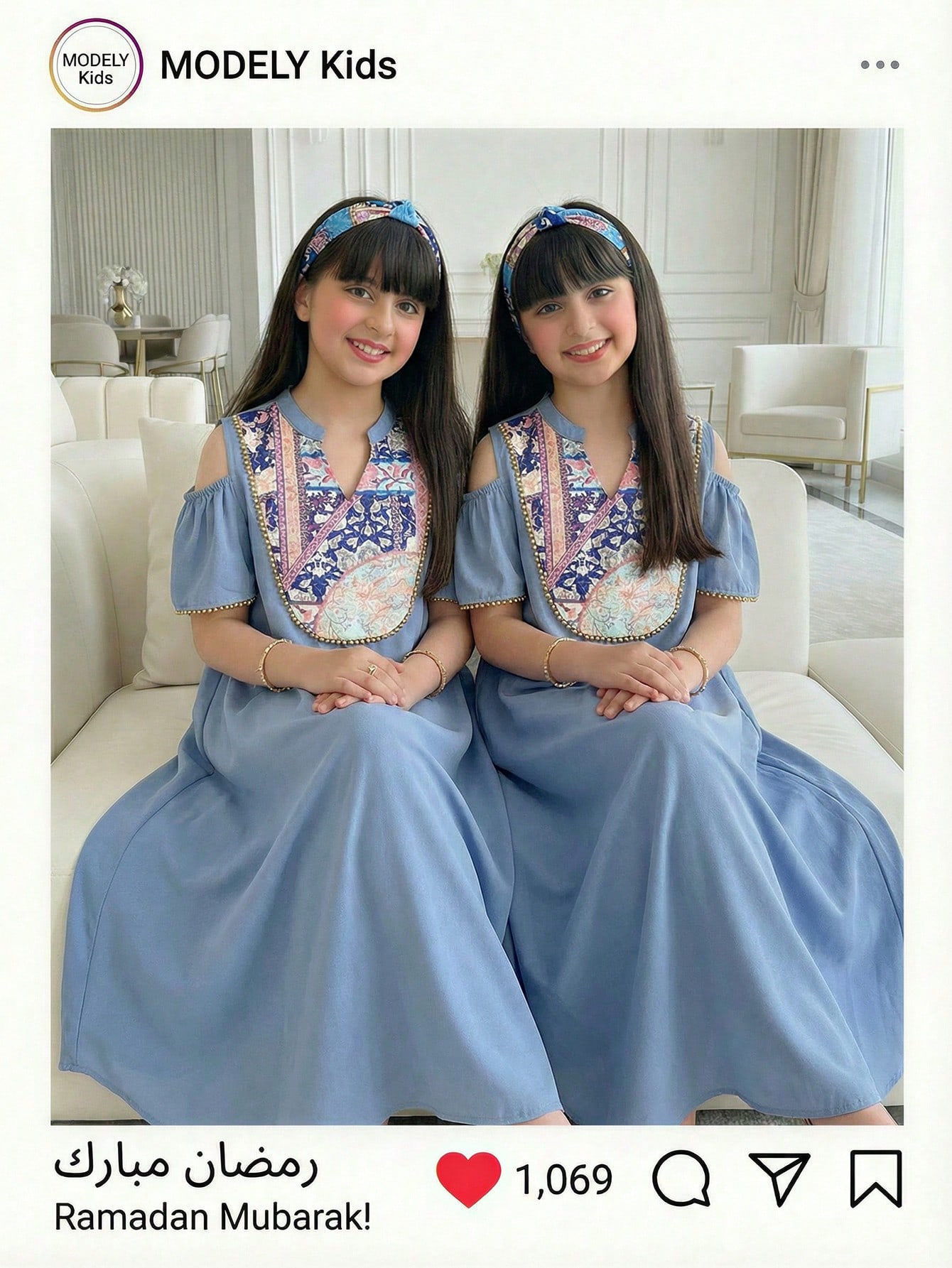 جلابية بناتي طويل أزرق-رمادي للمراهقات، قاعدة لون أزرق فاتح مع طوق مرقع بالزهور، تريم مخرز + تصميم ك