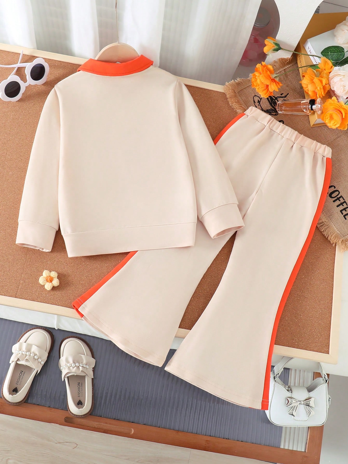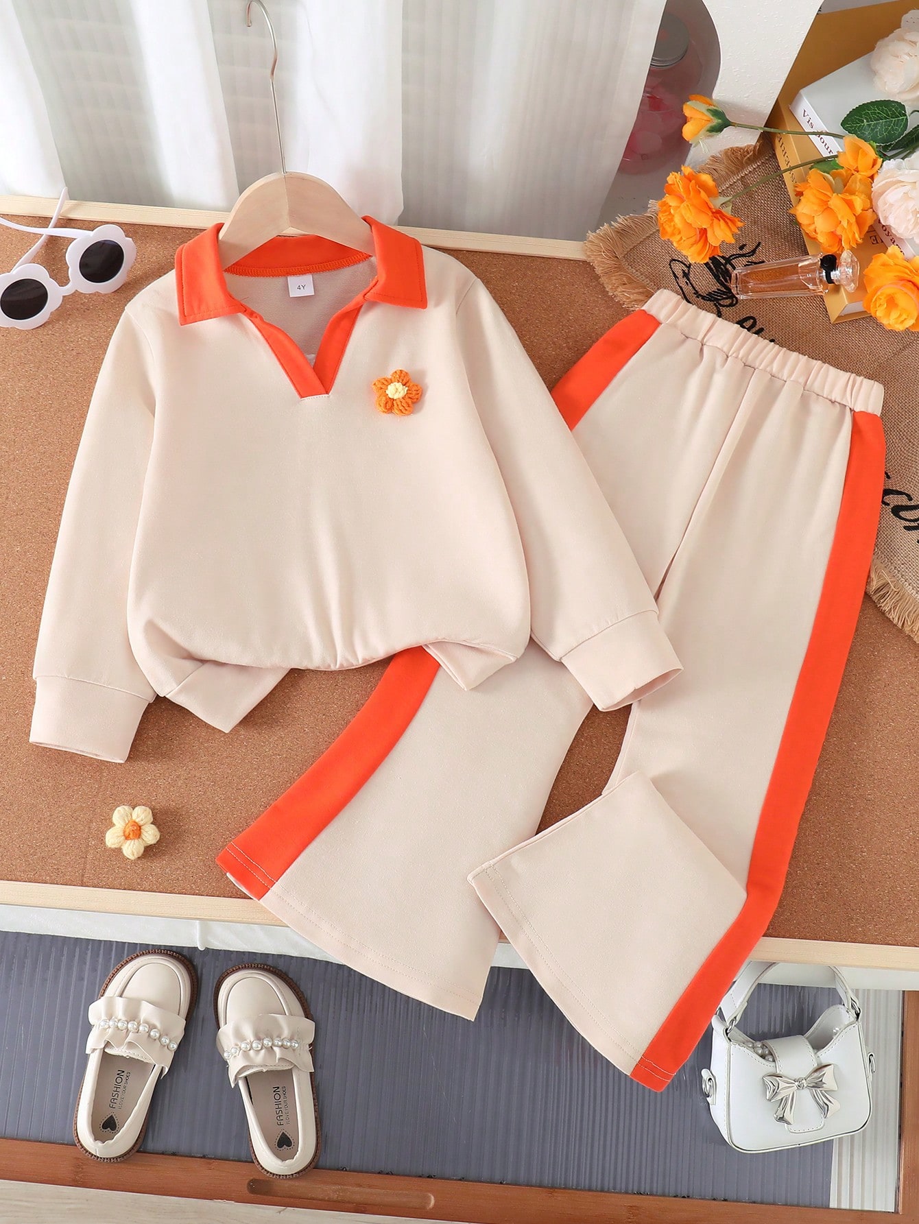 طقم كاجوال بناتي: بلوزة زهور وبنطلون واسع.