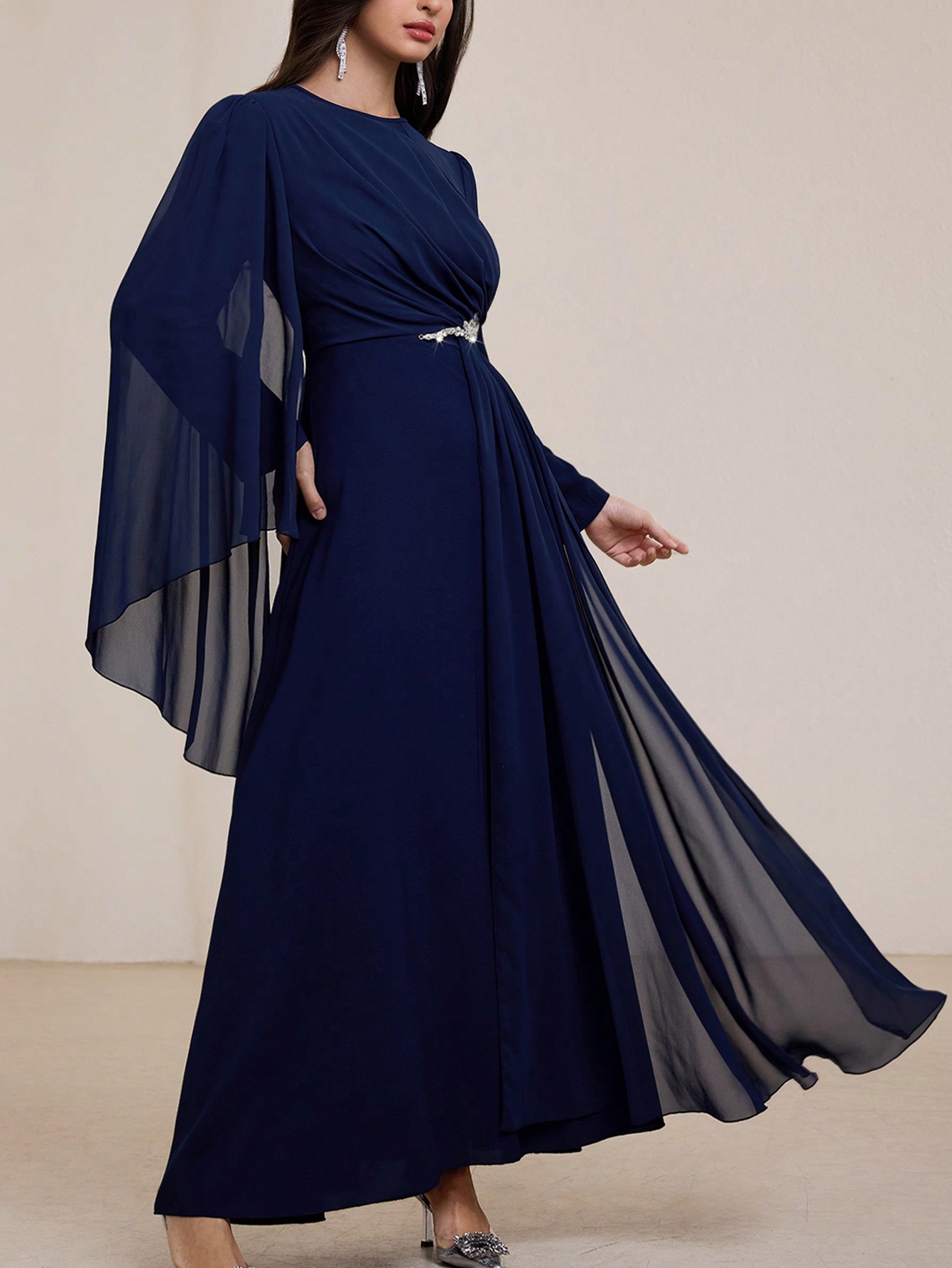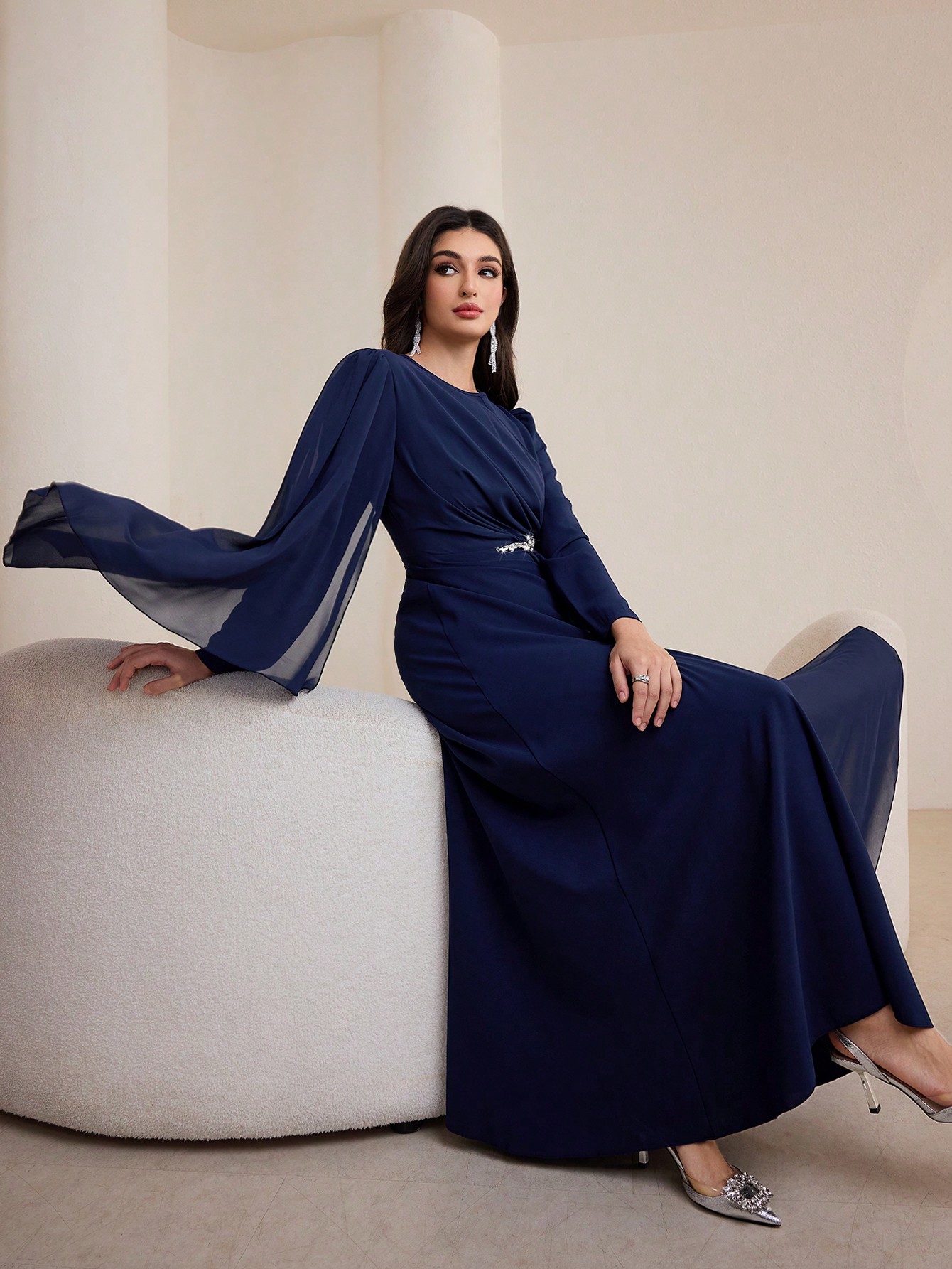 فستان أنيق سهل الارتداء للسيدات بلون واحد