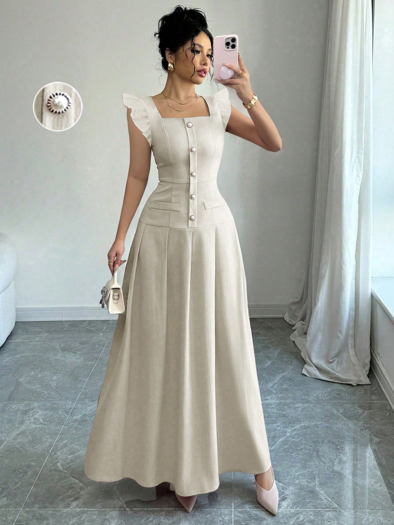 فستان أنيق أبوهي للصيف, فستان طويل للنساء مزين بأزرار