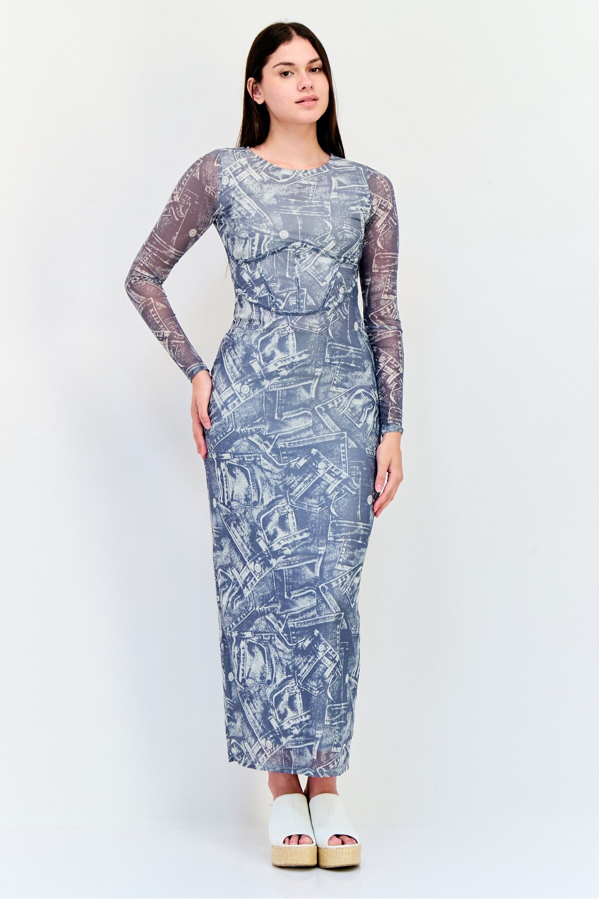 فستان ماكسي نسائي بطبعة كاملة، متعدد الألوان