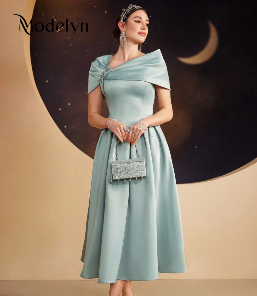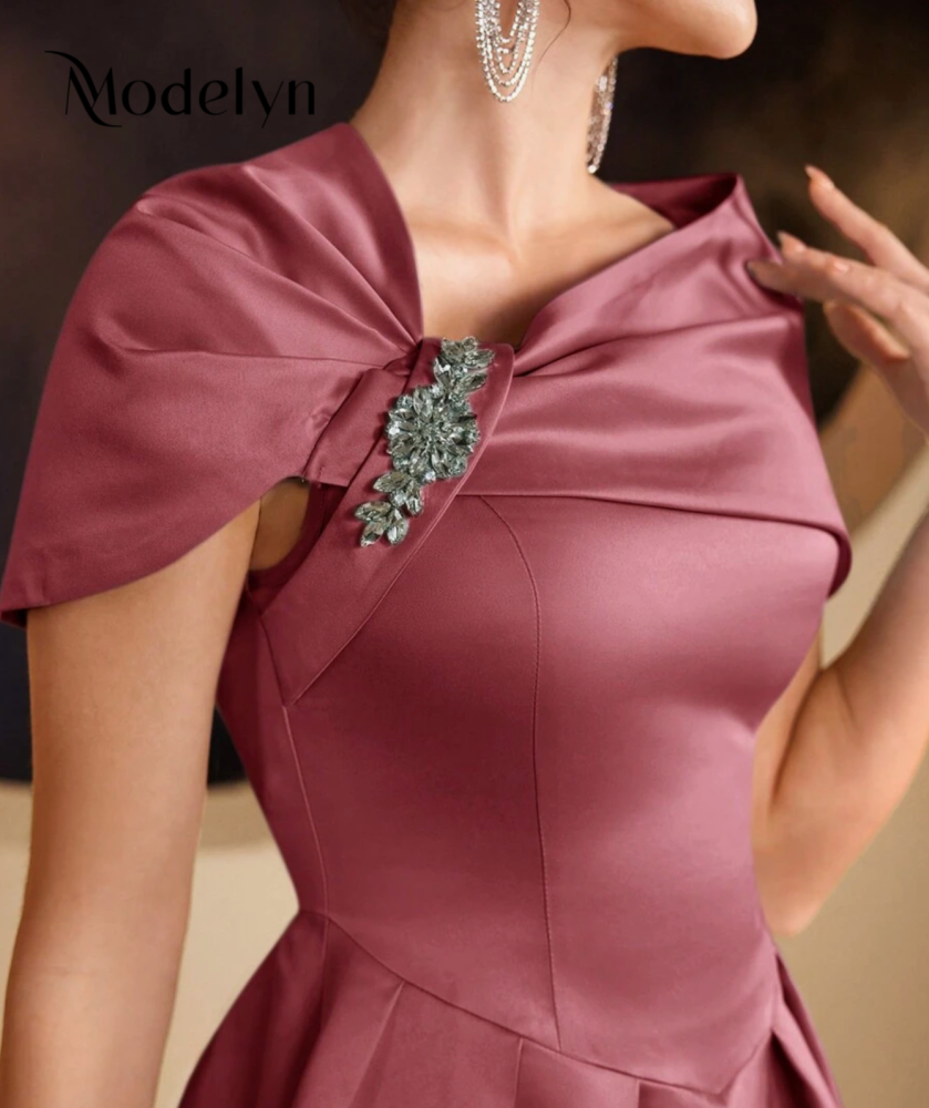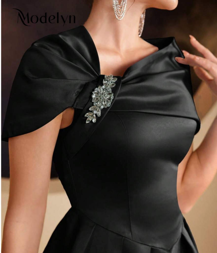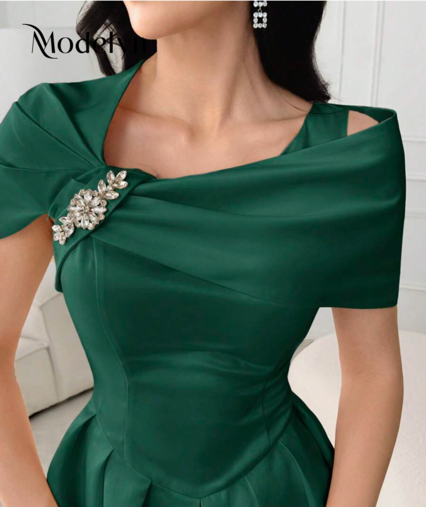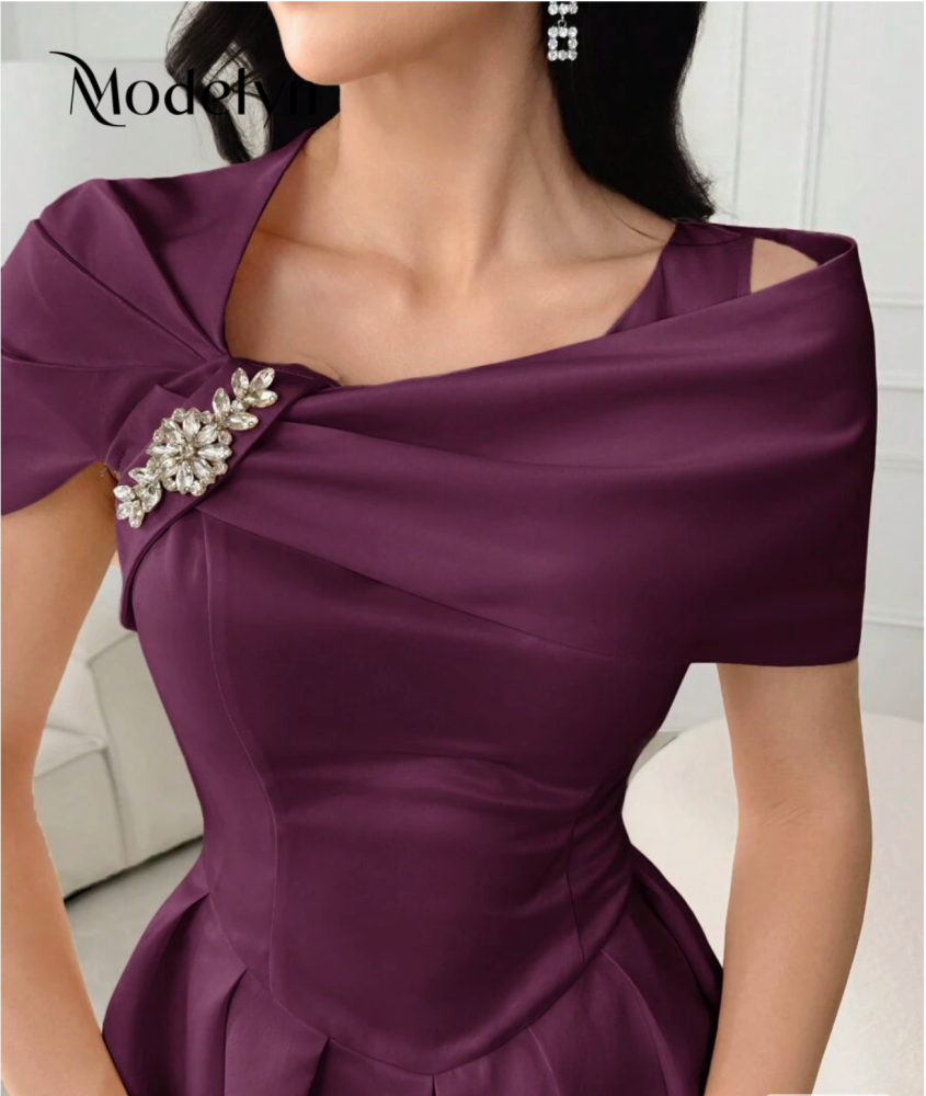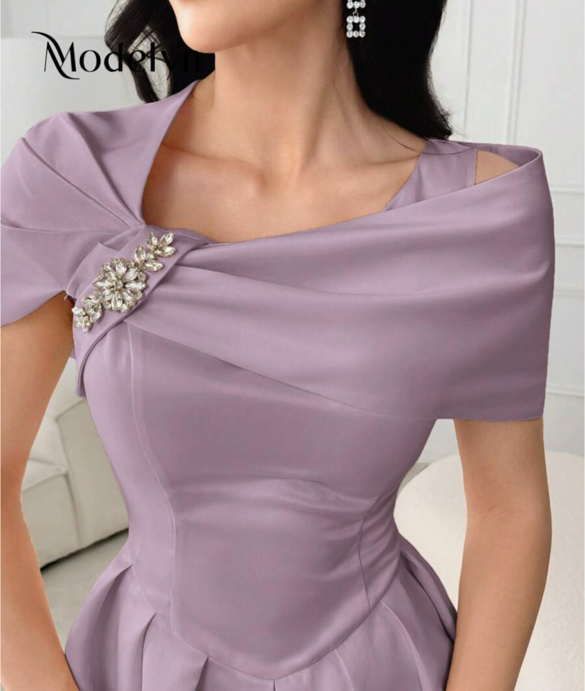 فستان صيفي أنيق أنثوي أكمام قصيرة بألوان سادة