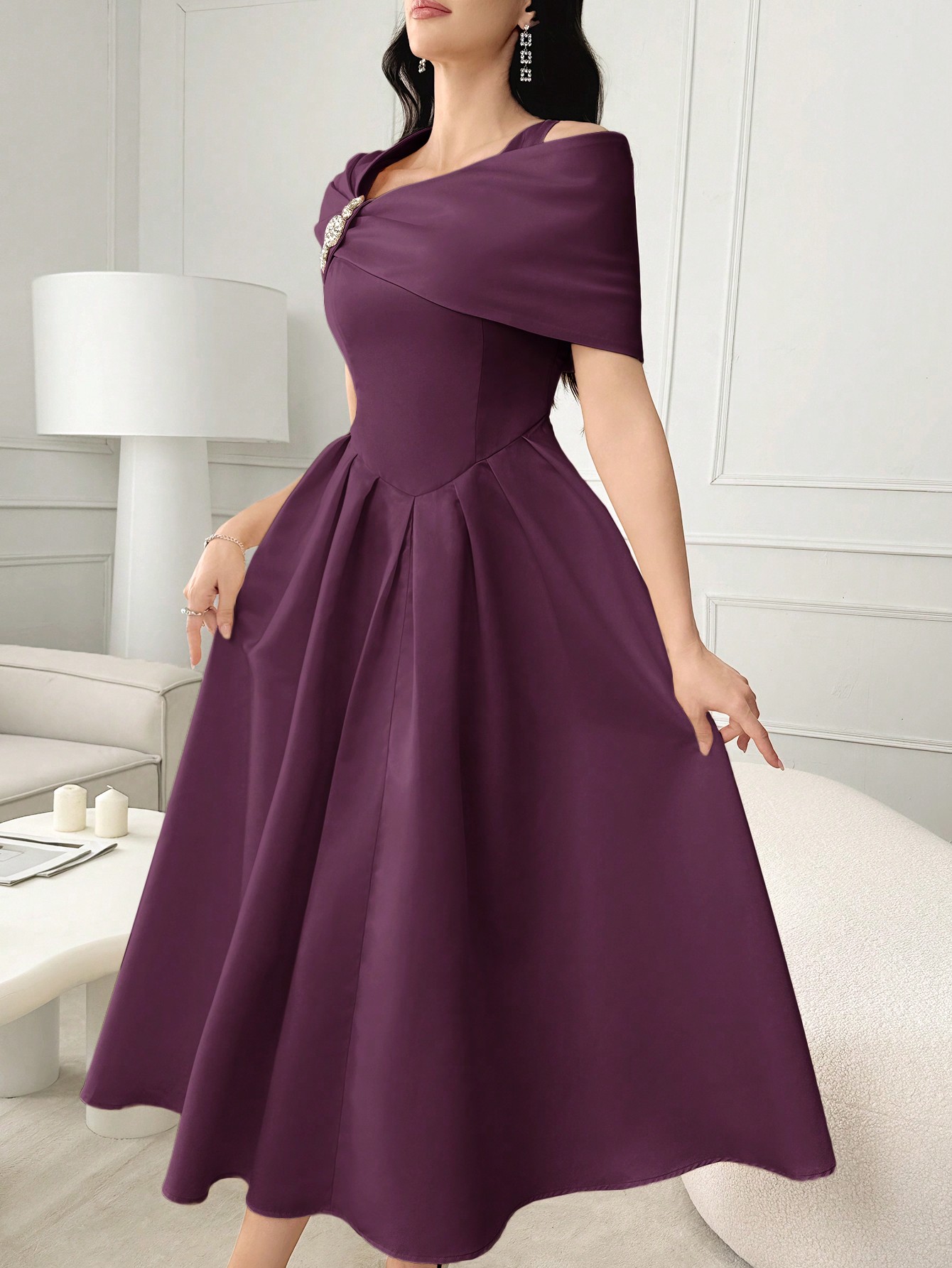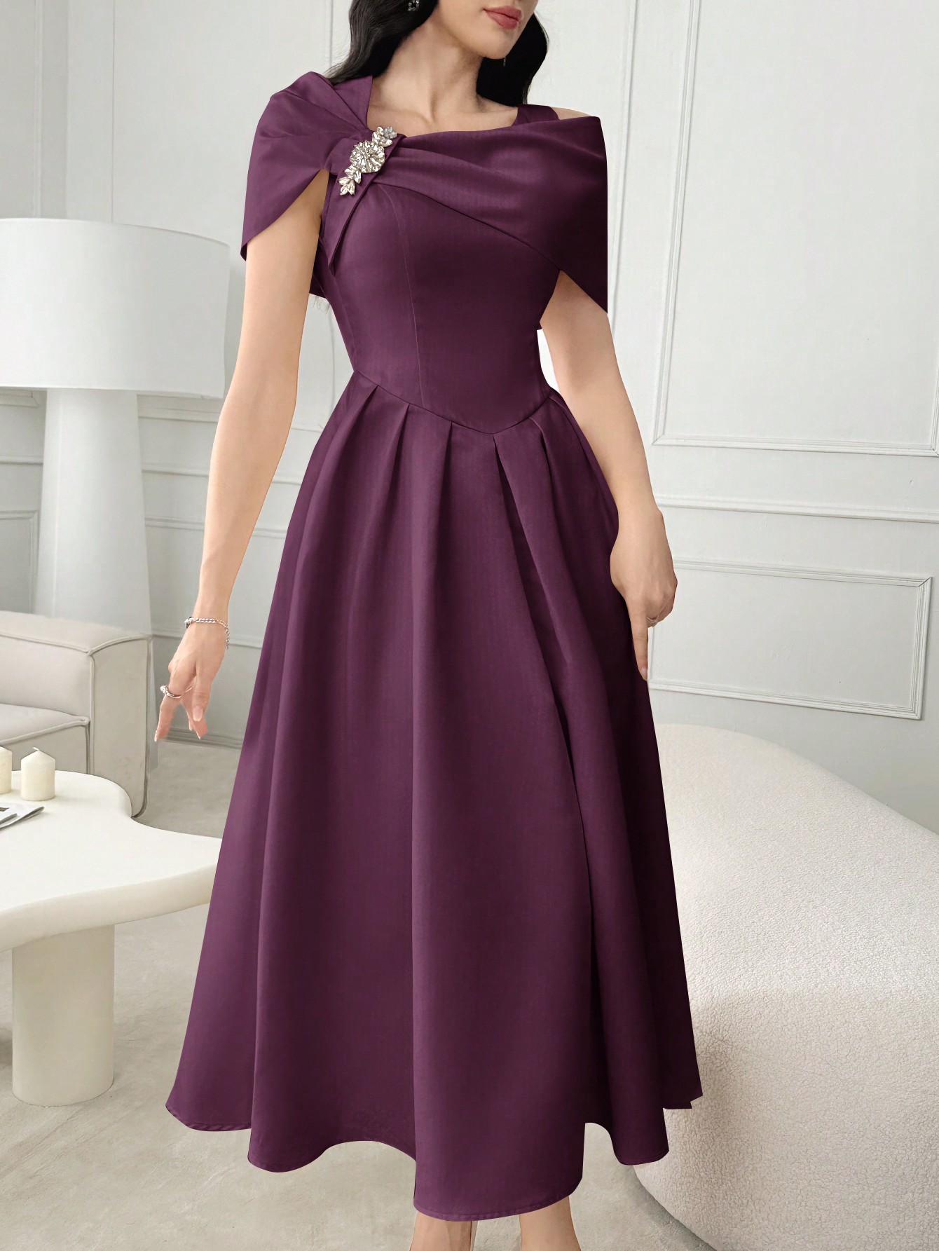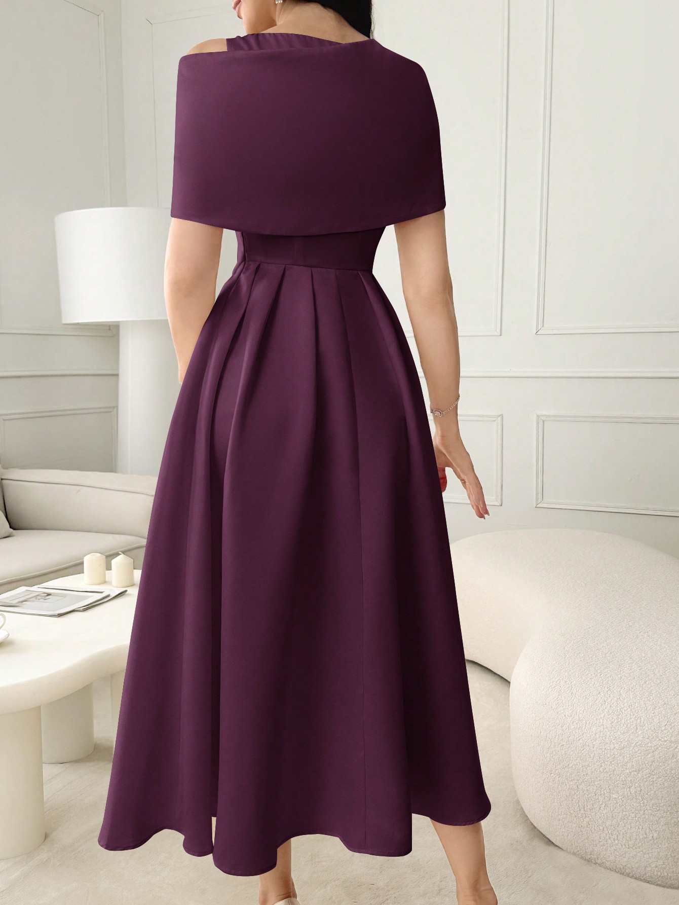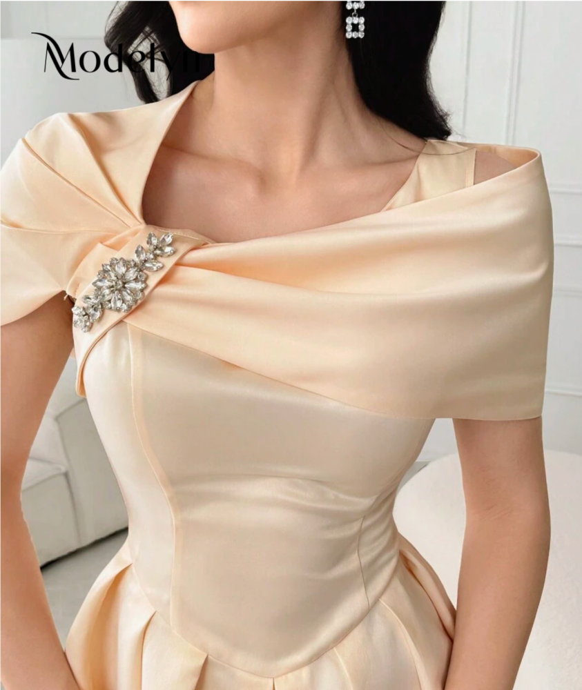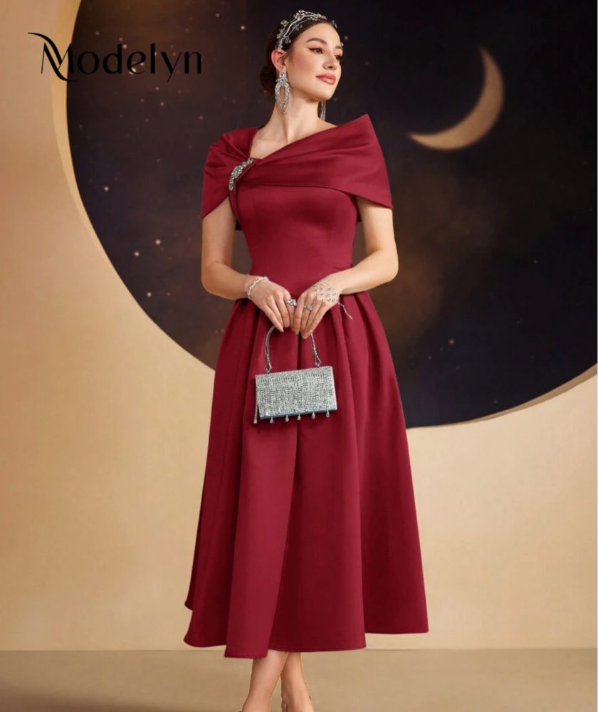 فستان صيفي أنيق أنثوي أكمام قصيرة بألوان سادة