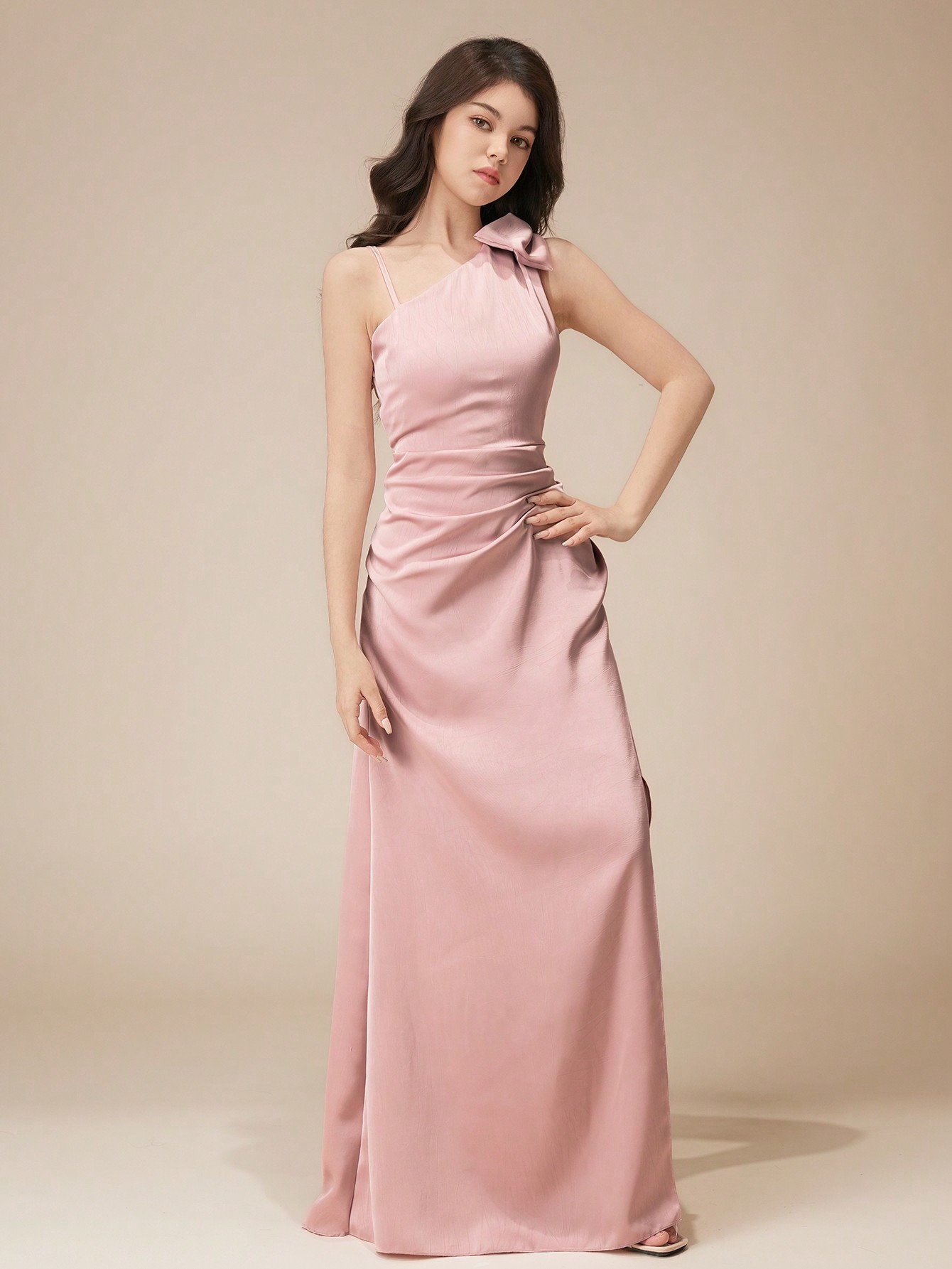 فستان وصيفة مراهقات، فيونكة، مجعّد، شق، زفاف/حفلات