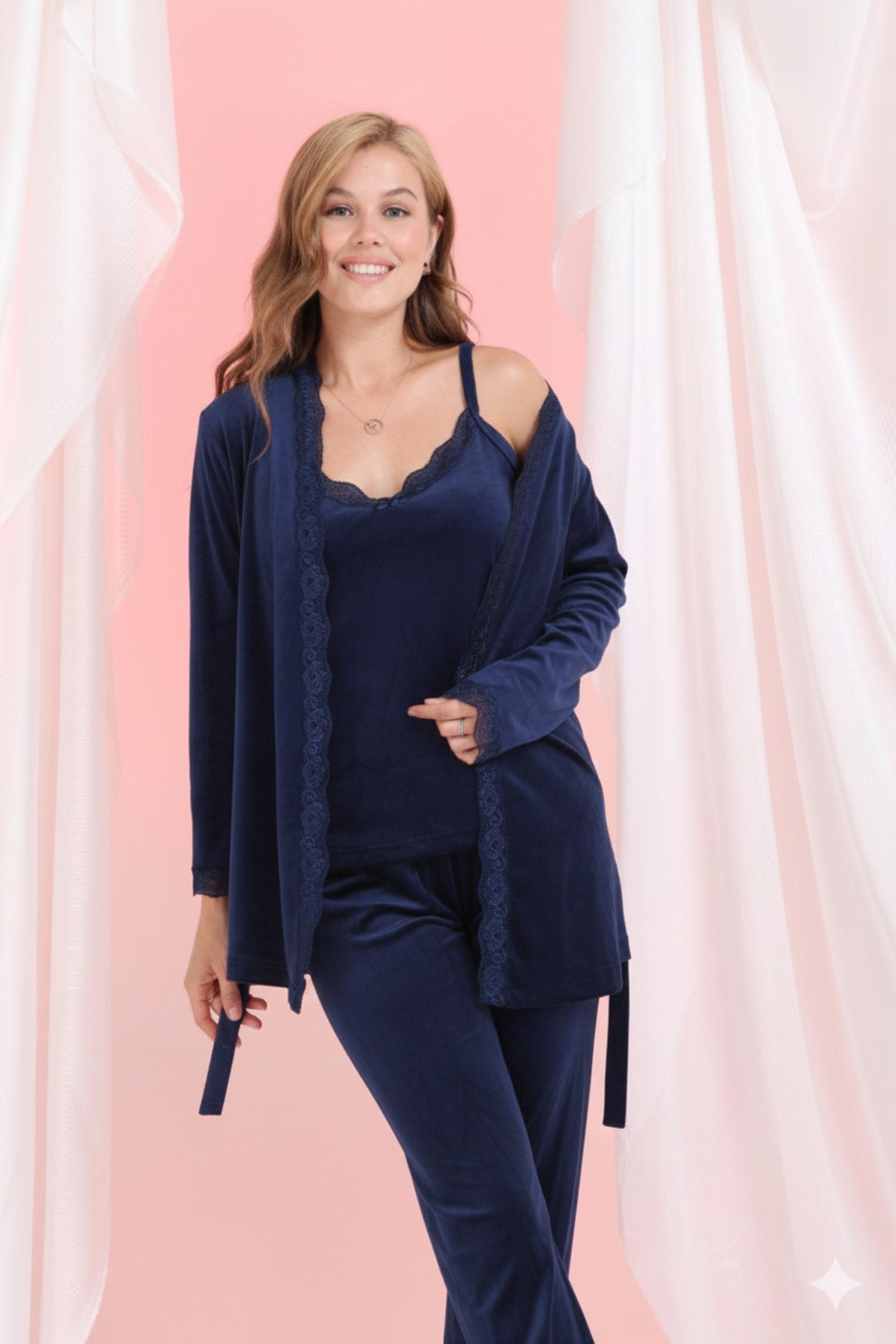 طقم بيجامة نسائي مكون من 3 قطع من القطيفة