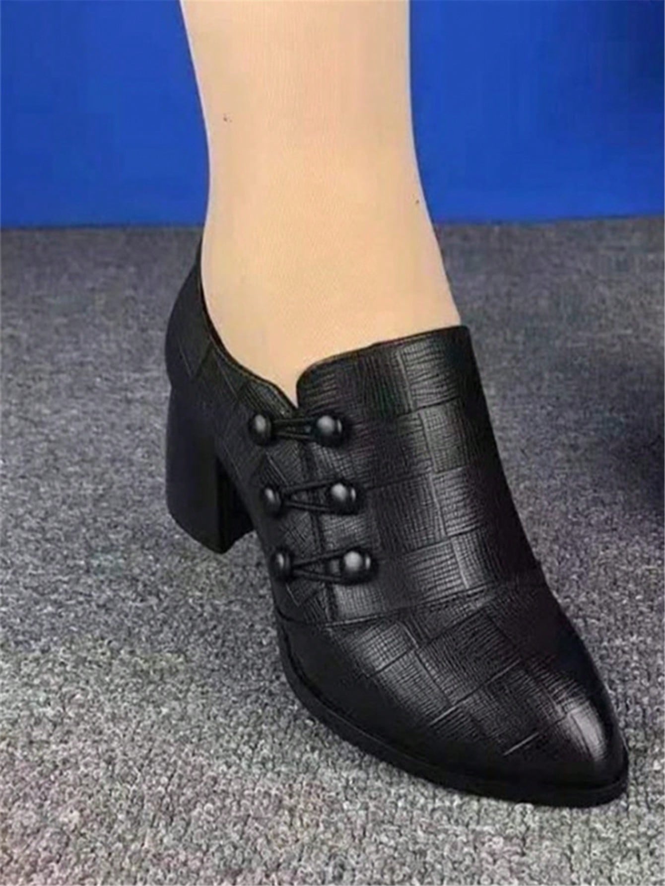 حذاء نسائي جلدي ذو كعب سميك و منخفض مقاسات كبيرة