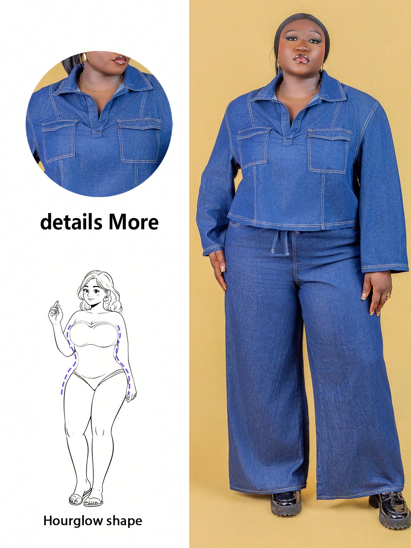 جينز نسائي مقاس كبير: جاكيت وبنطلون أزرق