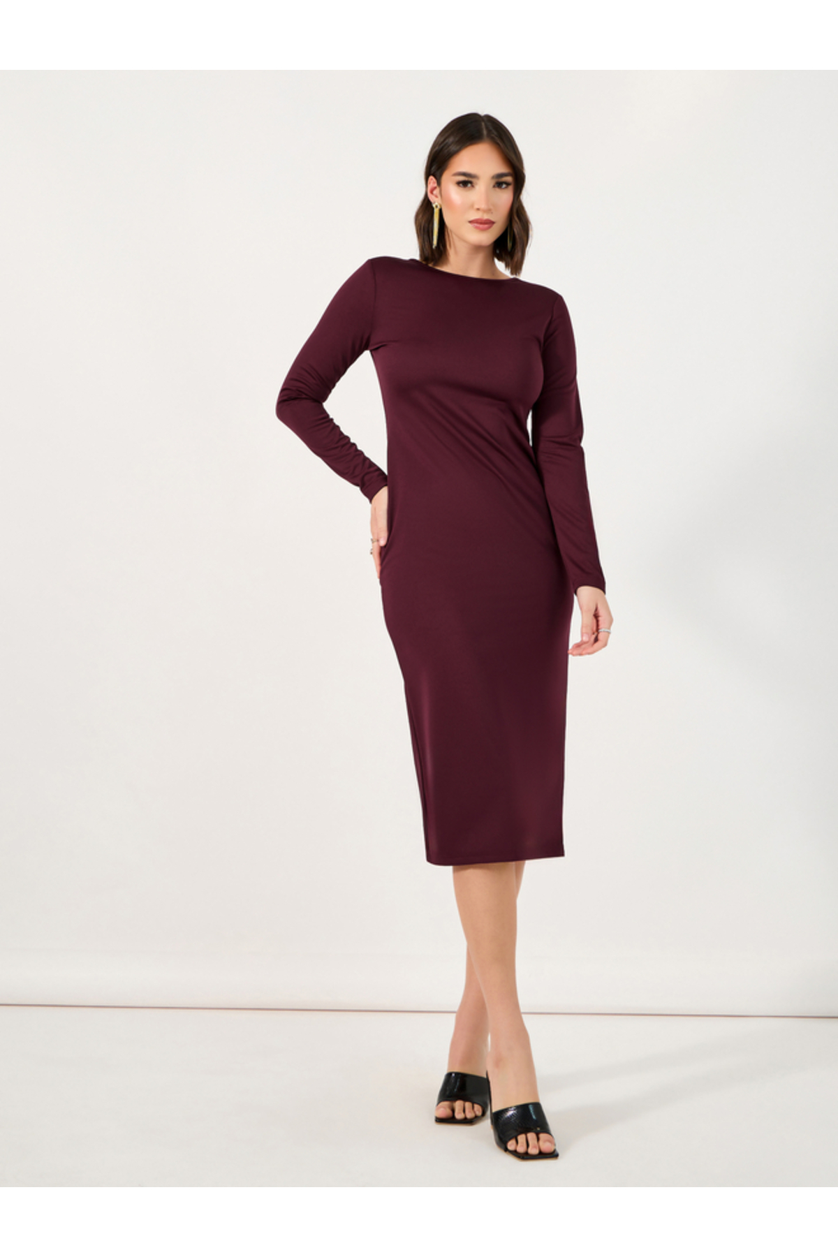 فستان ميدي ضيق بتفاصيل سحاب في الخلف