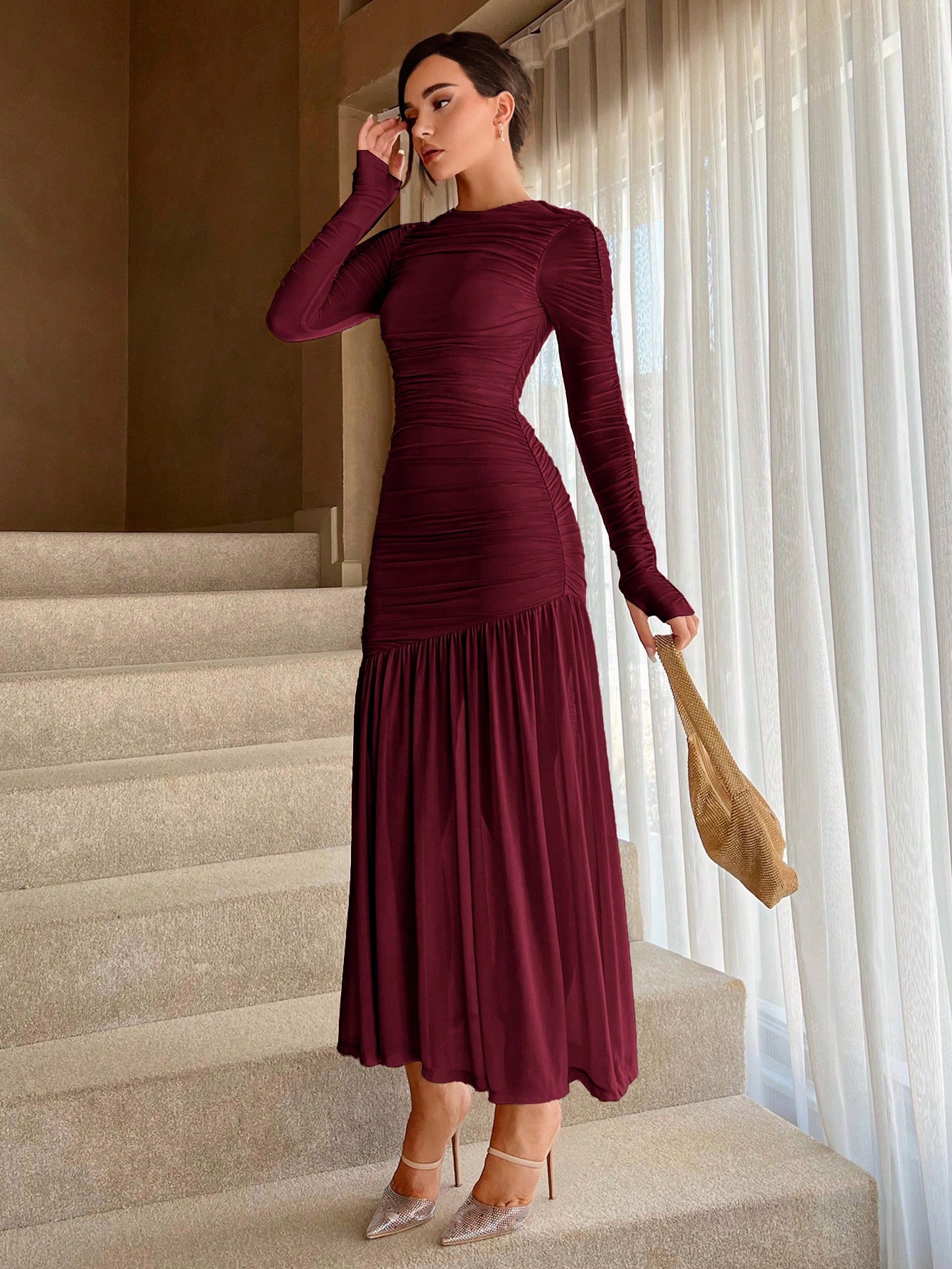 فستان طويل أنيق بلون أحادي مكسر
