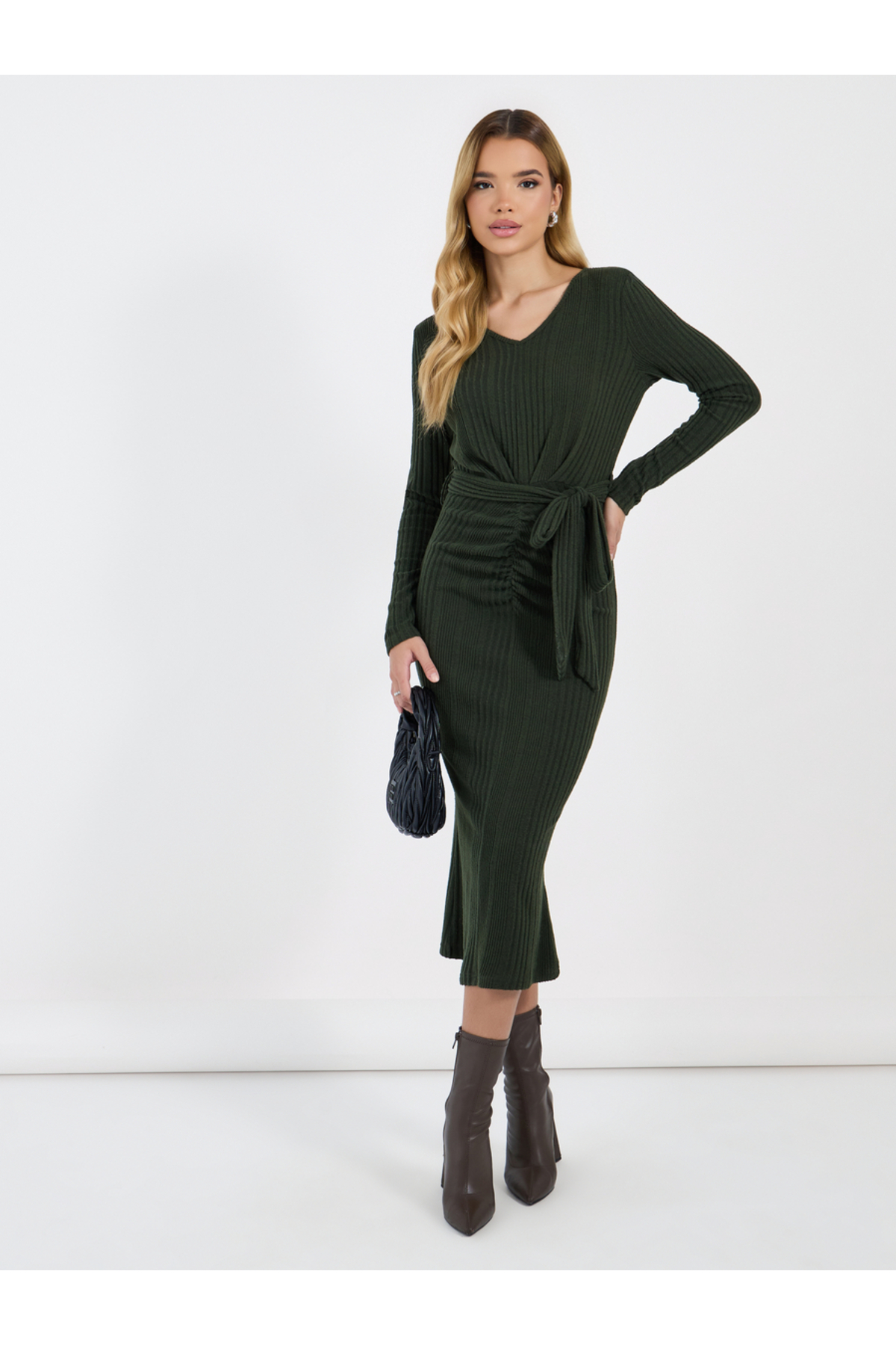 فستان ميدي بأكمام طويلة مع حزام ربطة عنق