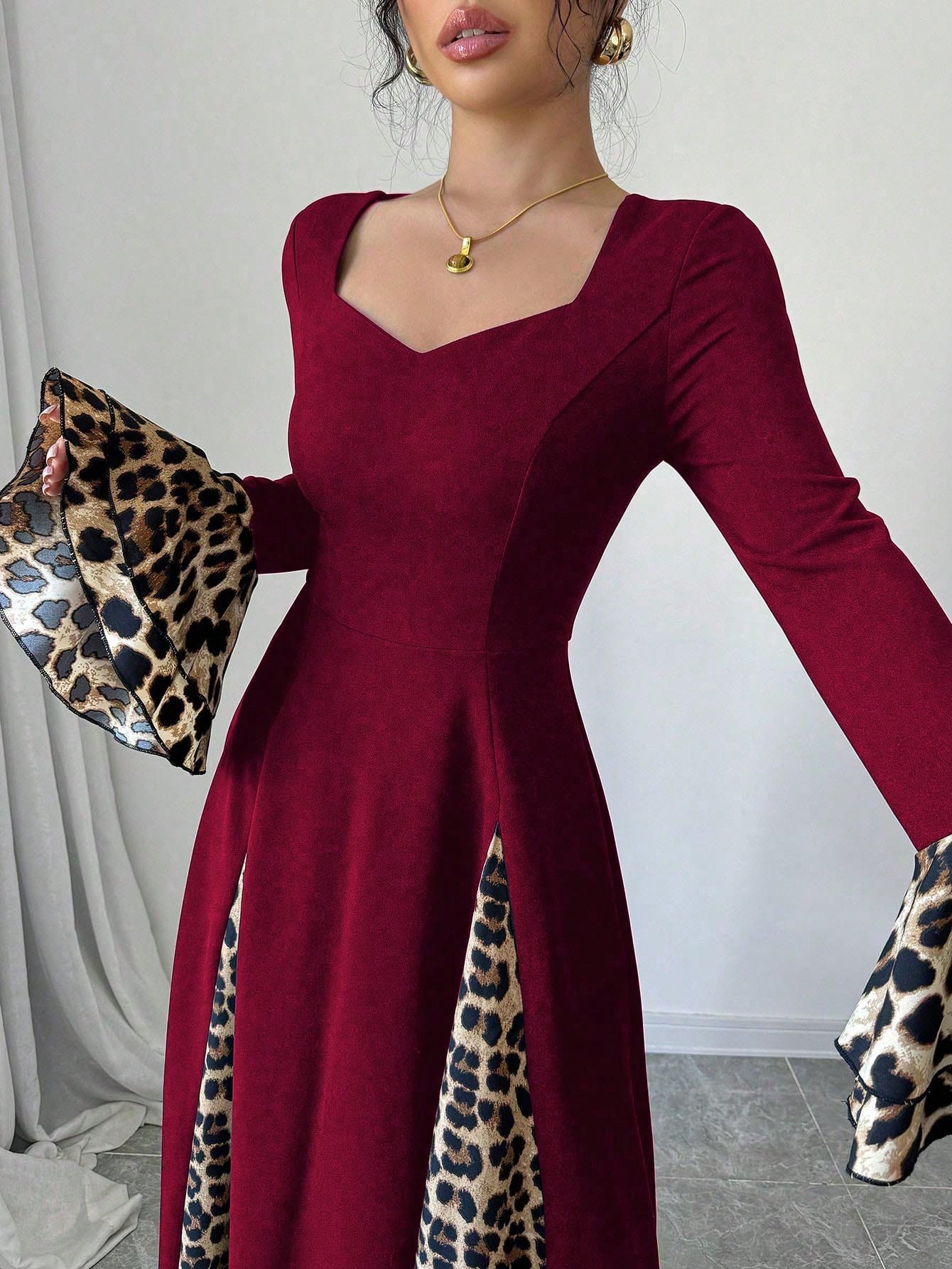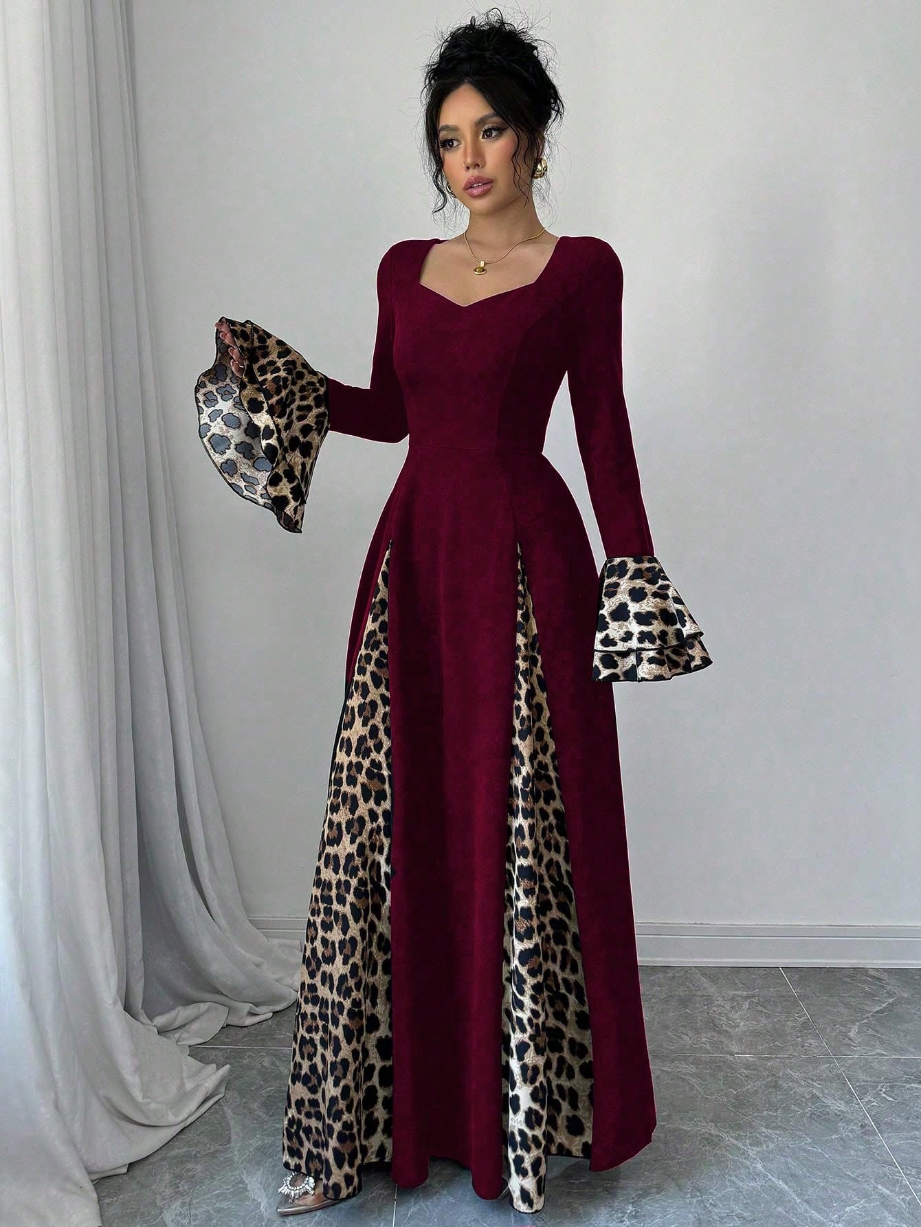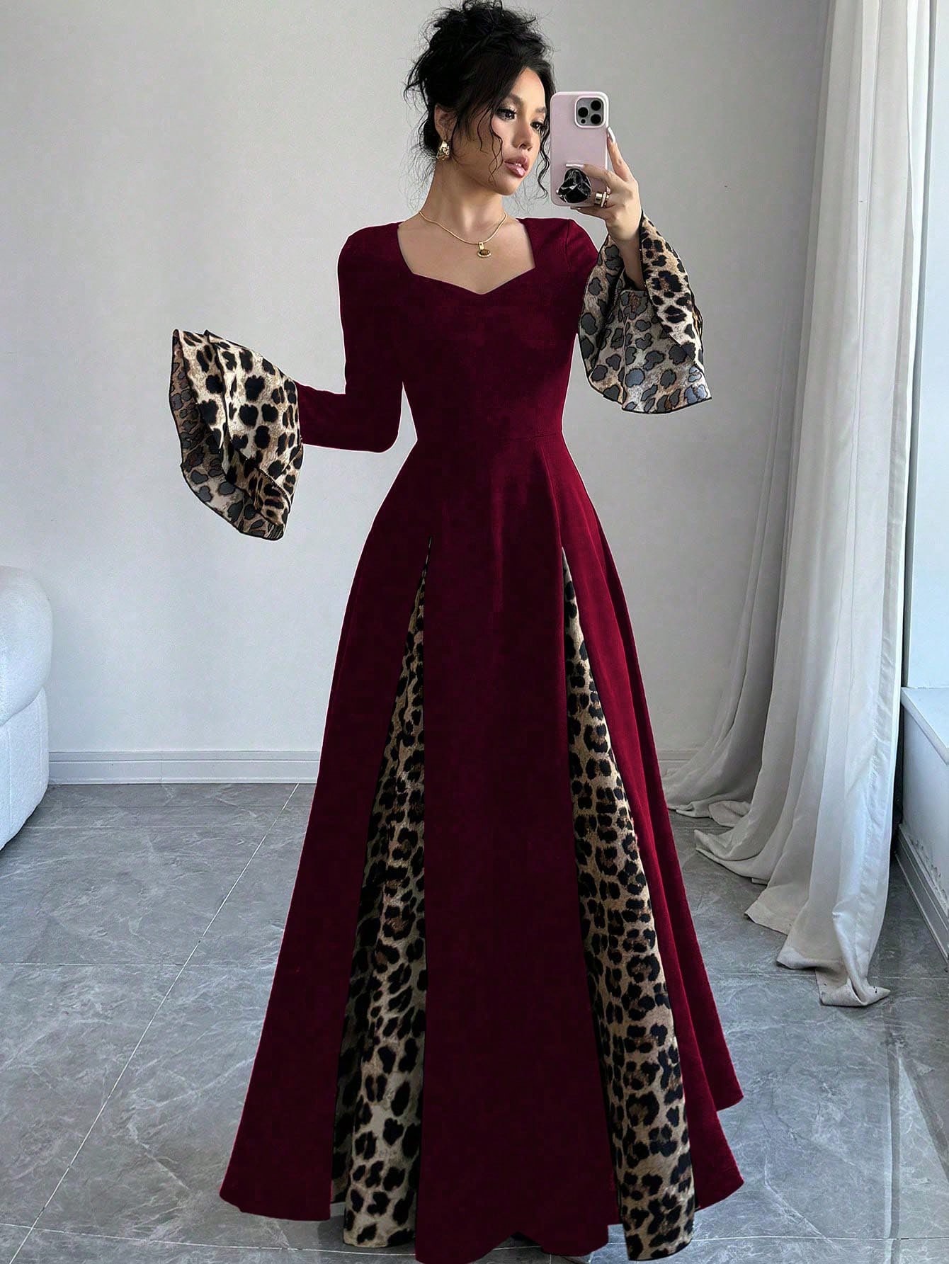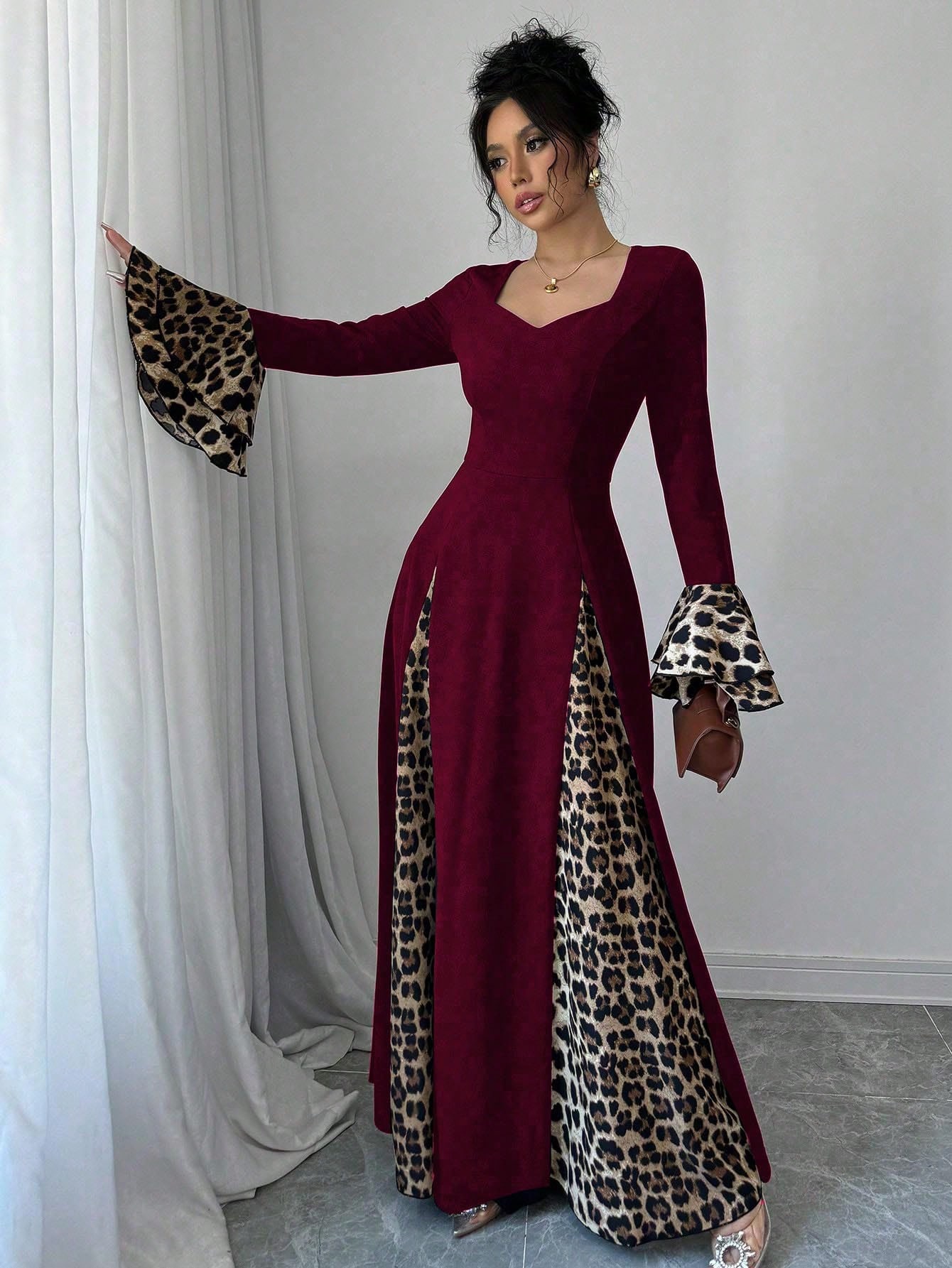 فستان سهره نسائي بأكمام واسعة مزخرف بنمط النمر